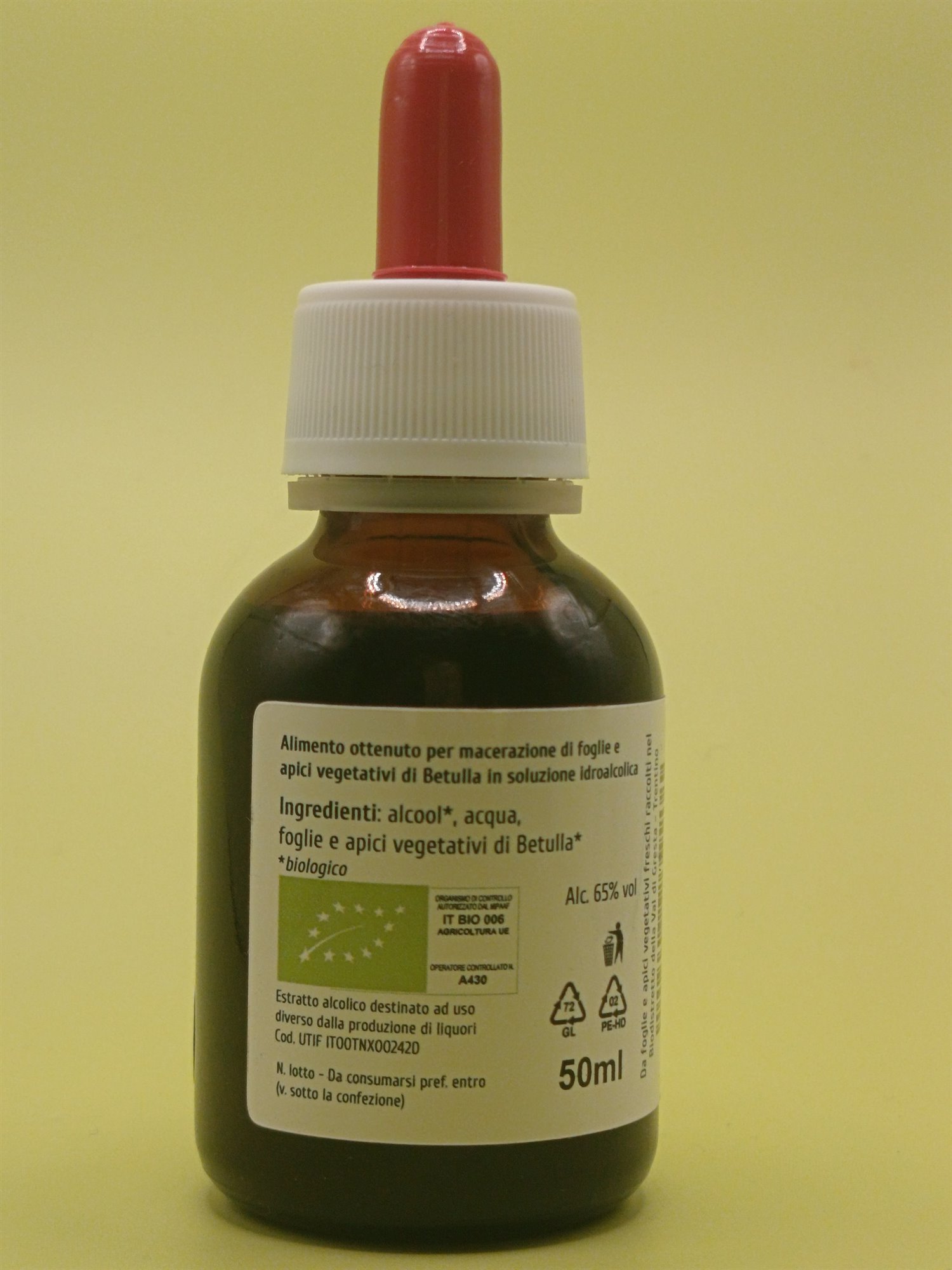 Ingredienti: alcool*, acqua, foglie e apici vegetativi di Betulla* (Betula alba L.)