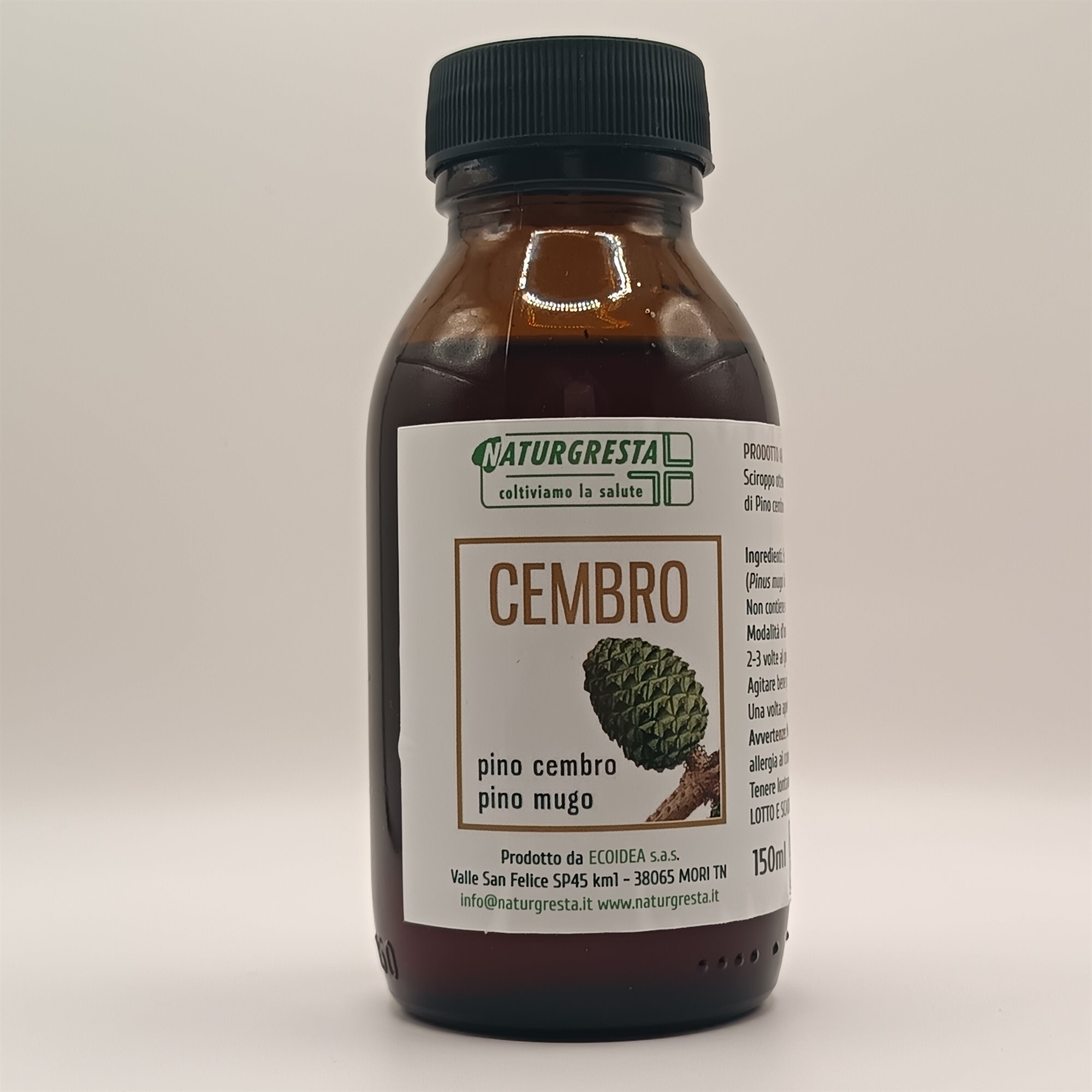 Ingredienti: Estratto di Pino cembro (Pinus cembra L.) coni e Pino mugo (Pinus mugo Turra) coni in zucchero di canna*, glicerina*