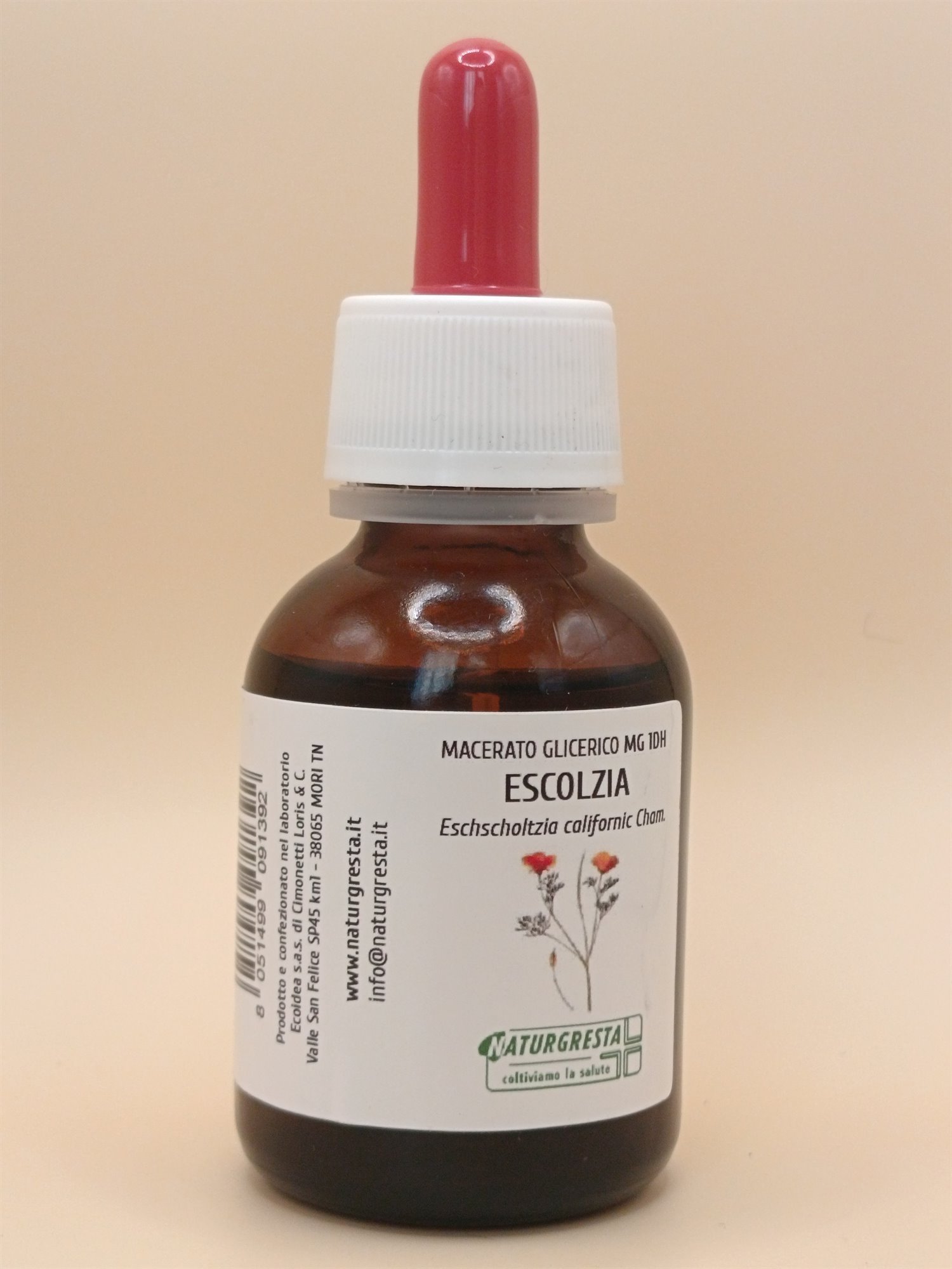 Ingredienti: glicerina vegetale*, alcool*, acqua, giovani foglie di Escolzia* (Eschscholtzia californica Cham.)