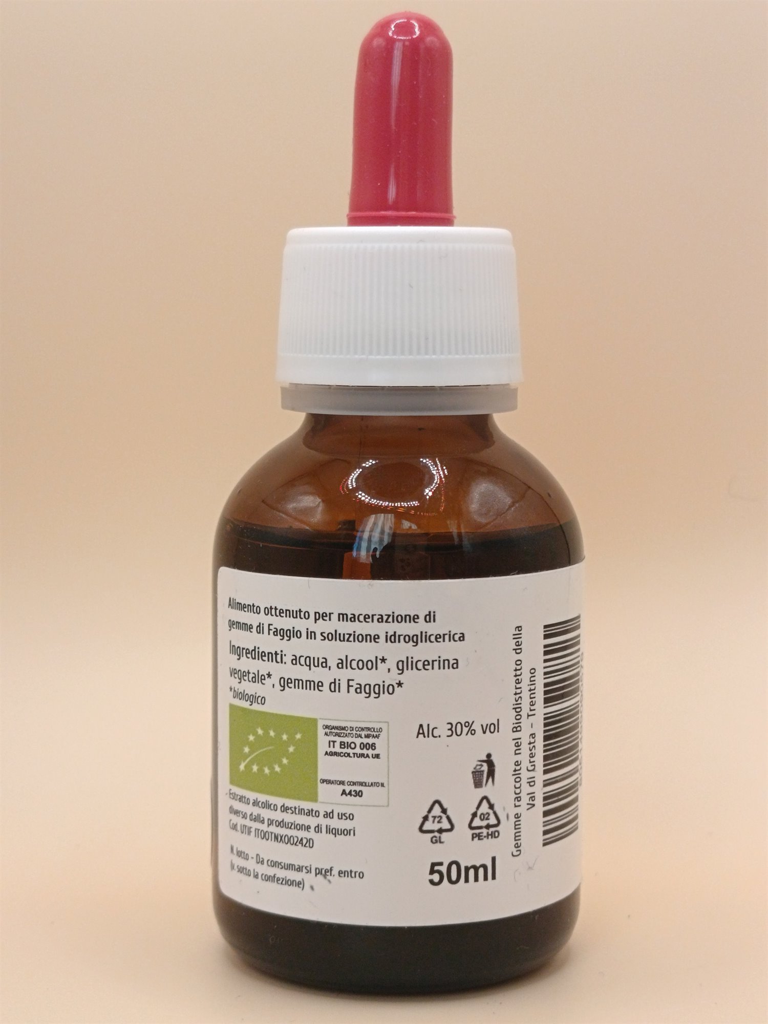 Ingredienti: glicerina vegetale*, alcool*, acqua, gemme di Faggio* (Fagus sylvatica L.)