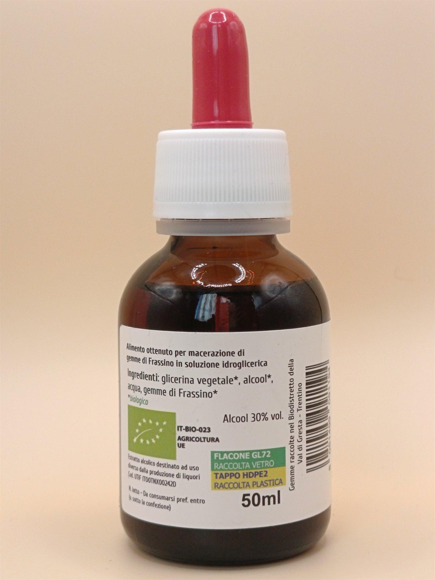 Ingredienti: glicerina vegetale*, alcool*, acqua, gemme di Frassino* (Fraxinus L.)