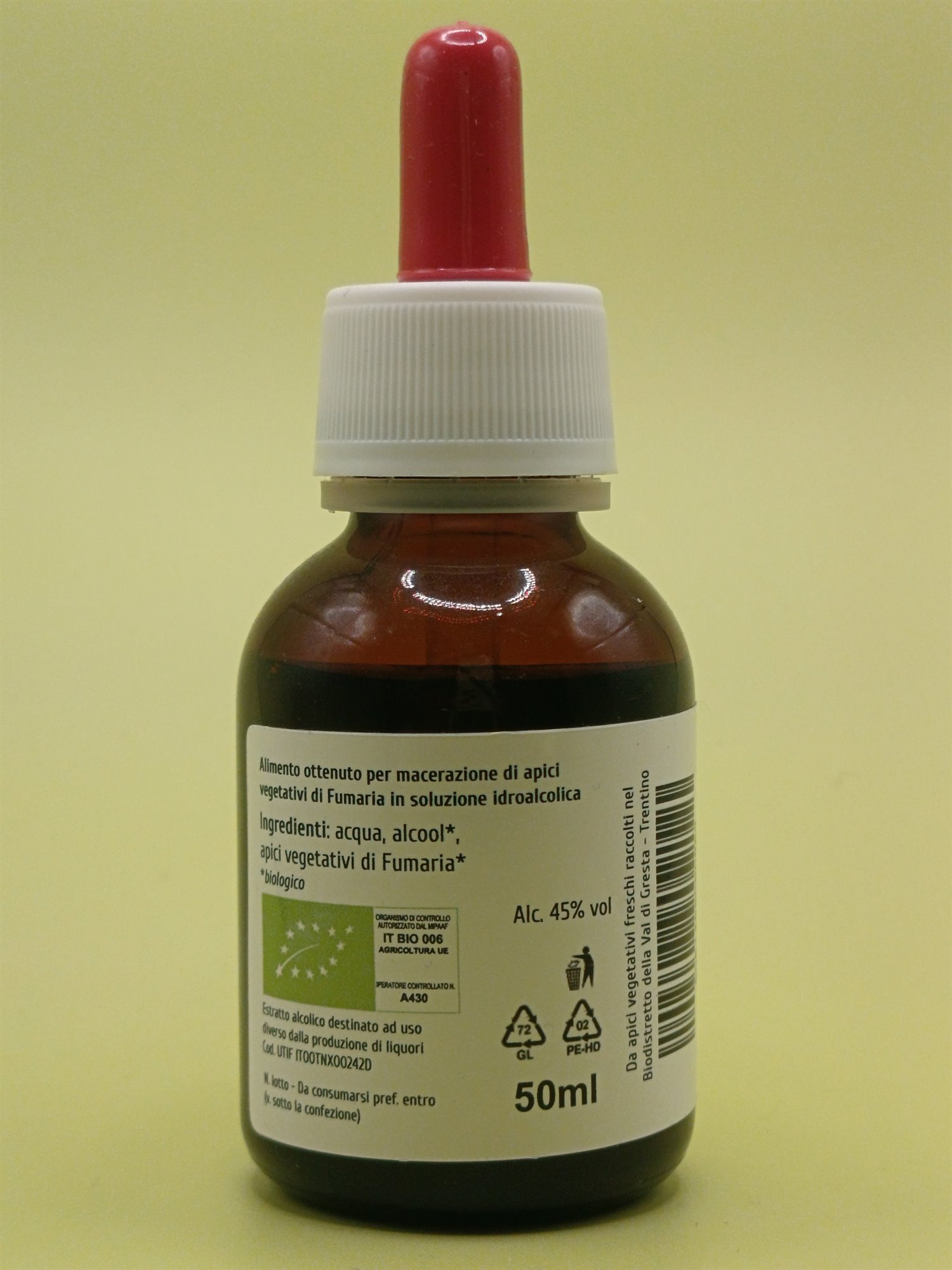Ingredienti: acqua, alcool*, apici vegetativi di Fumaria* (Fumaria officinalis L.)