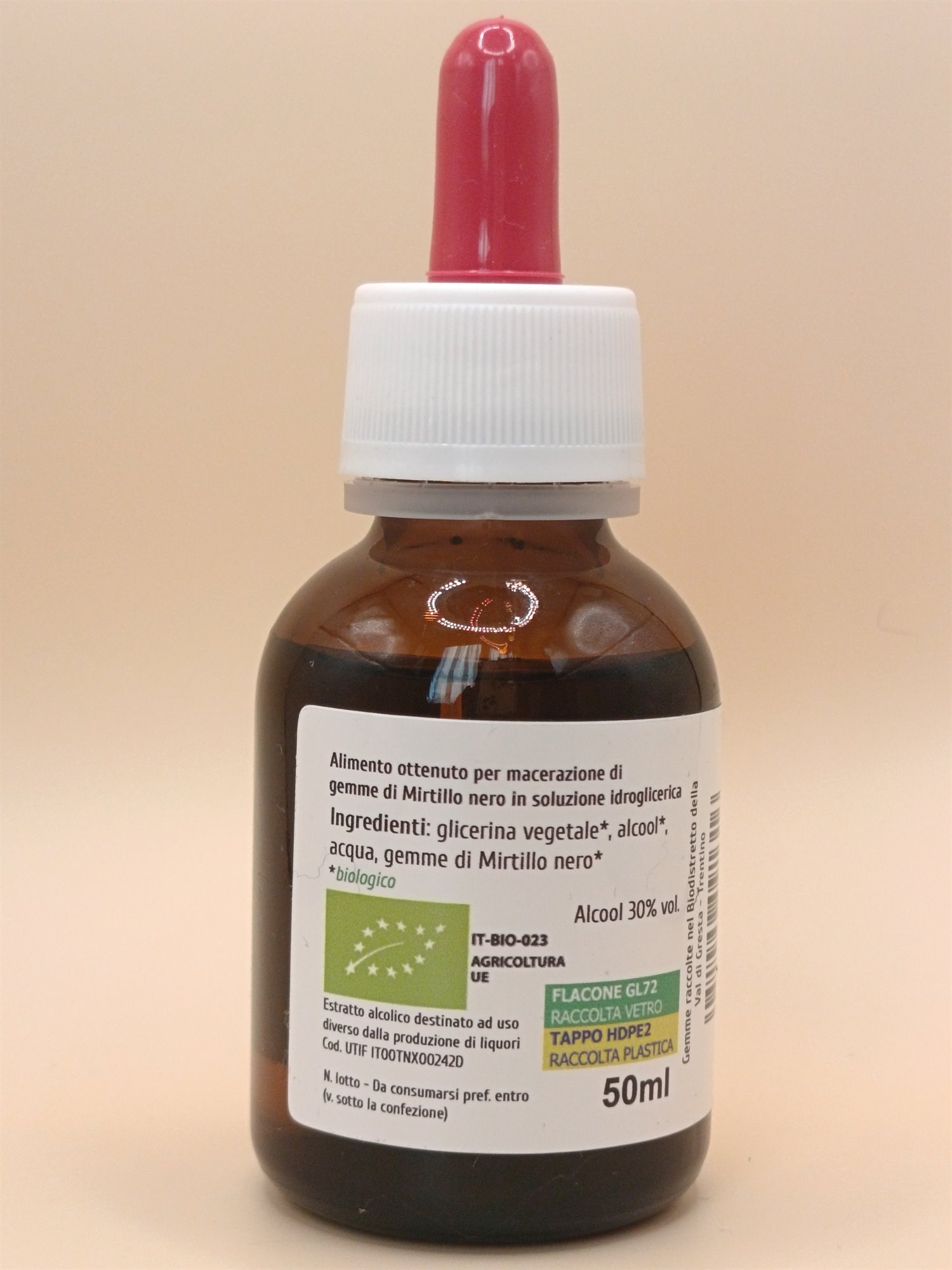 Ingredienti: glicerina vegetale*, alcool*, acqua, gemme di Mirtillo nero* (Vaccinium myrtillus L.)