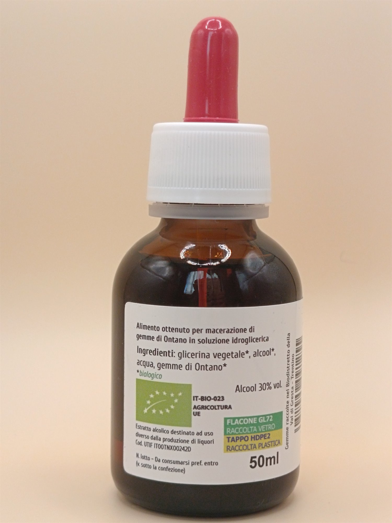 Ingredienti: glicerina vegetale*, alcool*, acqua, gemme di Ontano* (Alnus glutinosa Gaertn.)