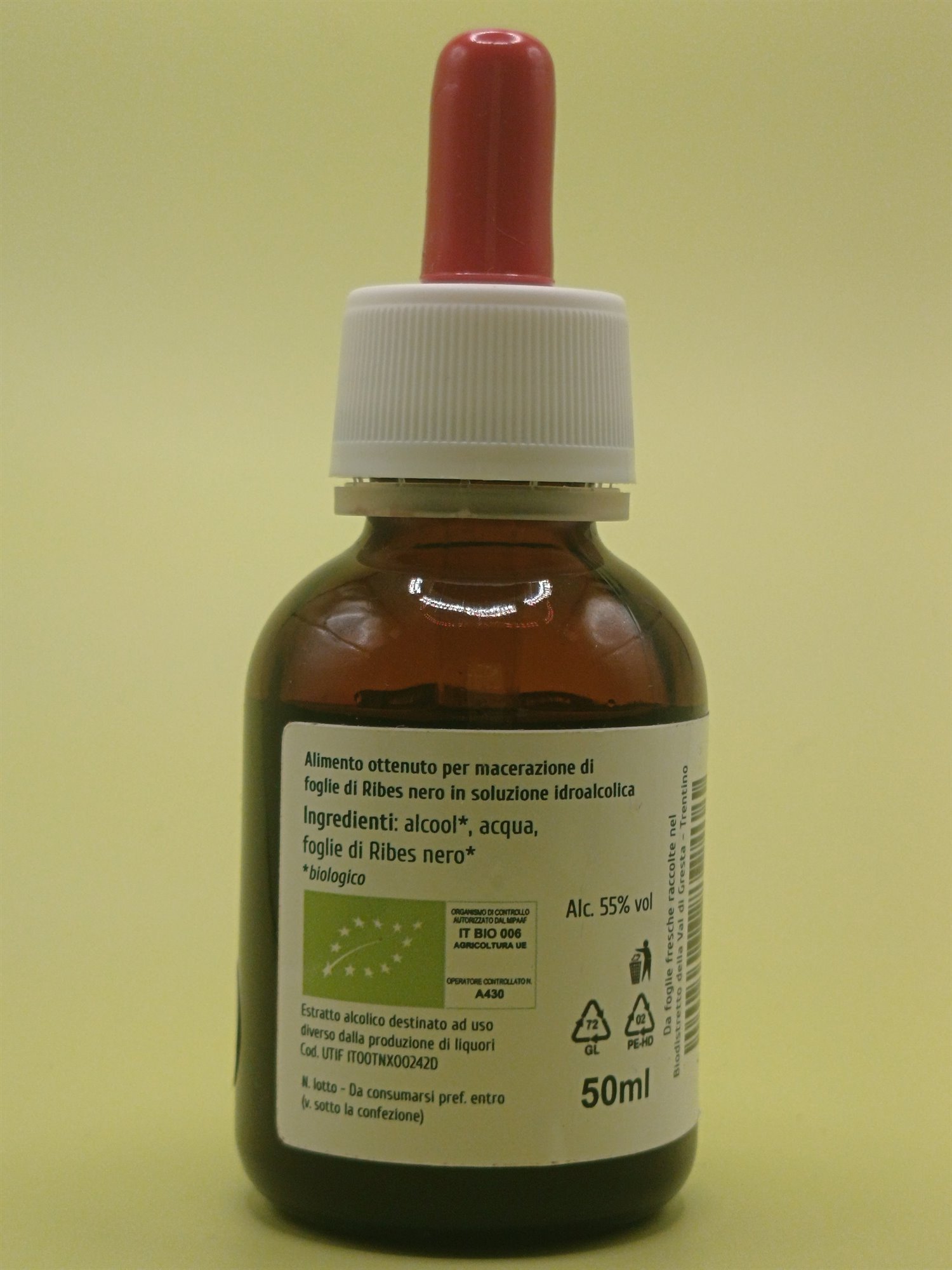 Ingredienti: alcool*, acqua, foglie di Ribes nero* (Ribes nigrum L.)