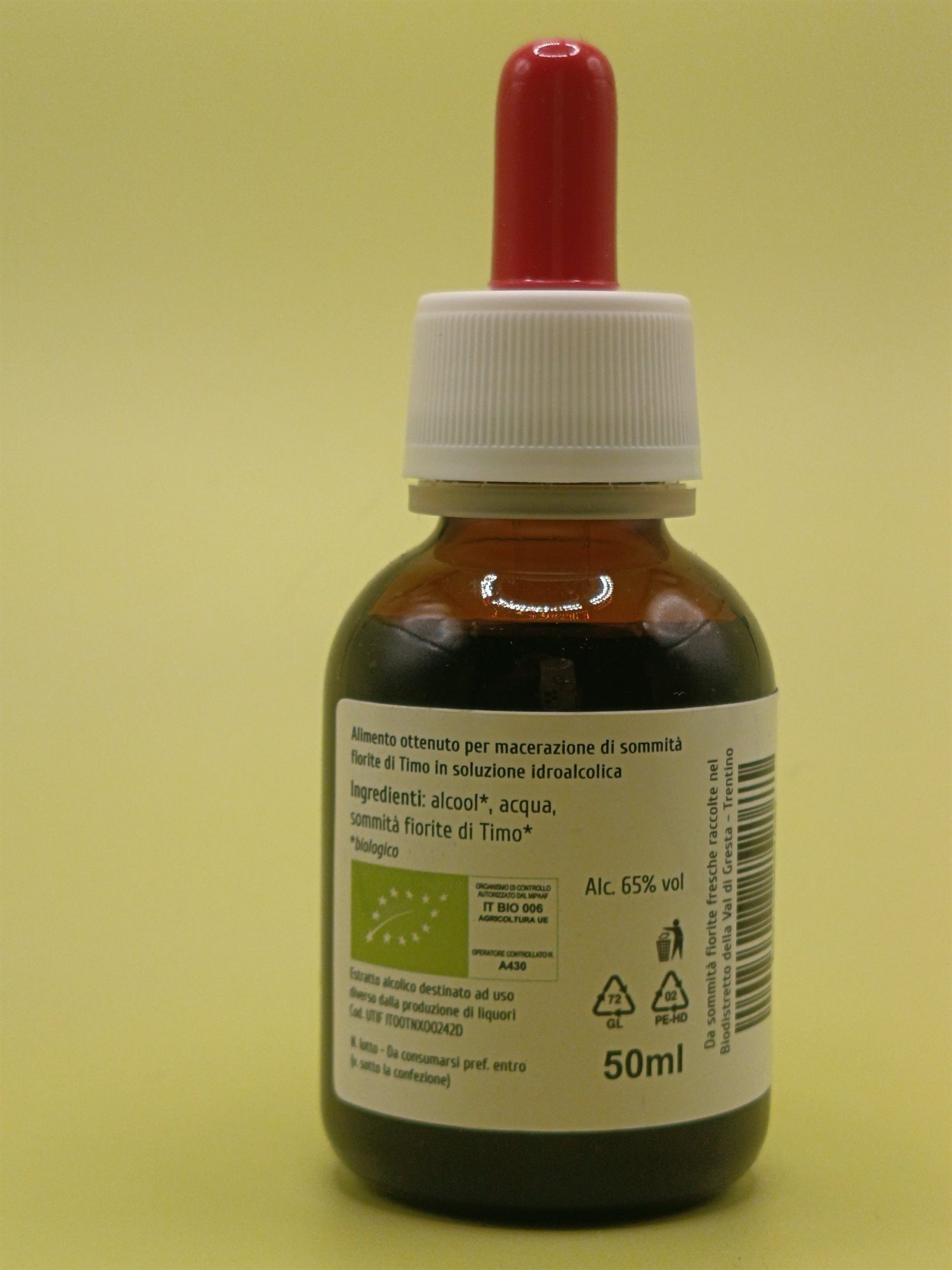 Ingredienti: alcool*, acqua, sommità fiorite di Timo* (Thymus vulgaris L.)