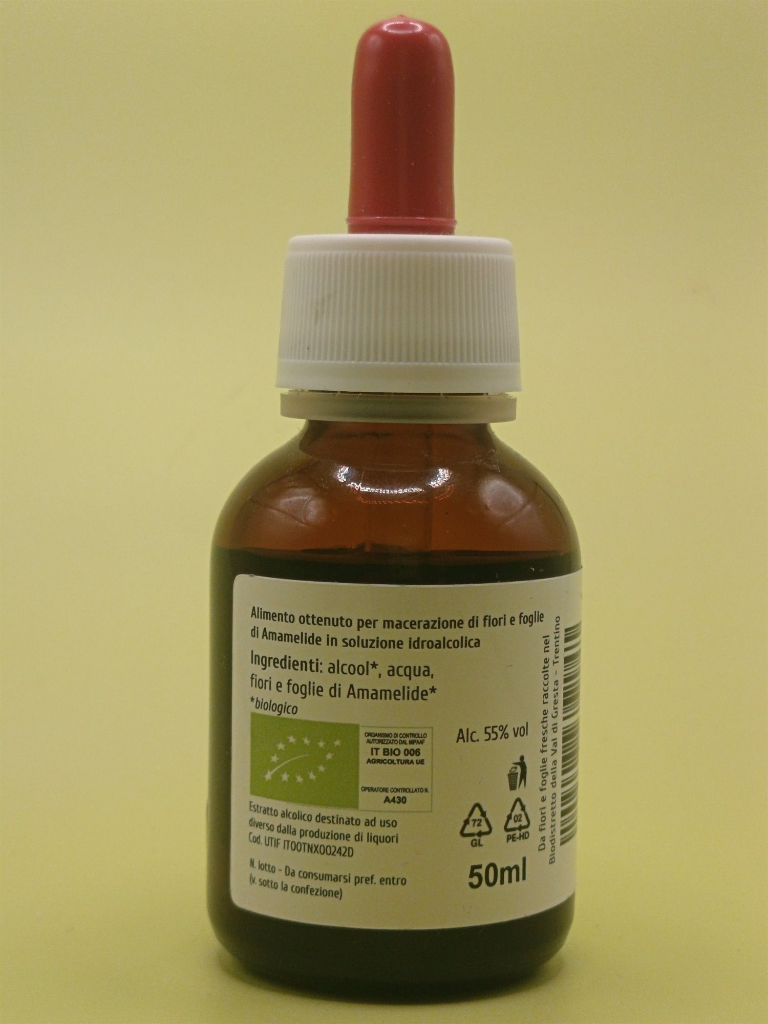 Ingredienti: alcool*, acqua, fiori e foglie di Amamelide* (Hamamelis virginiana L.)