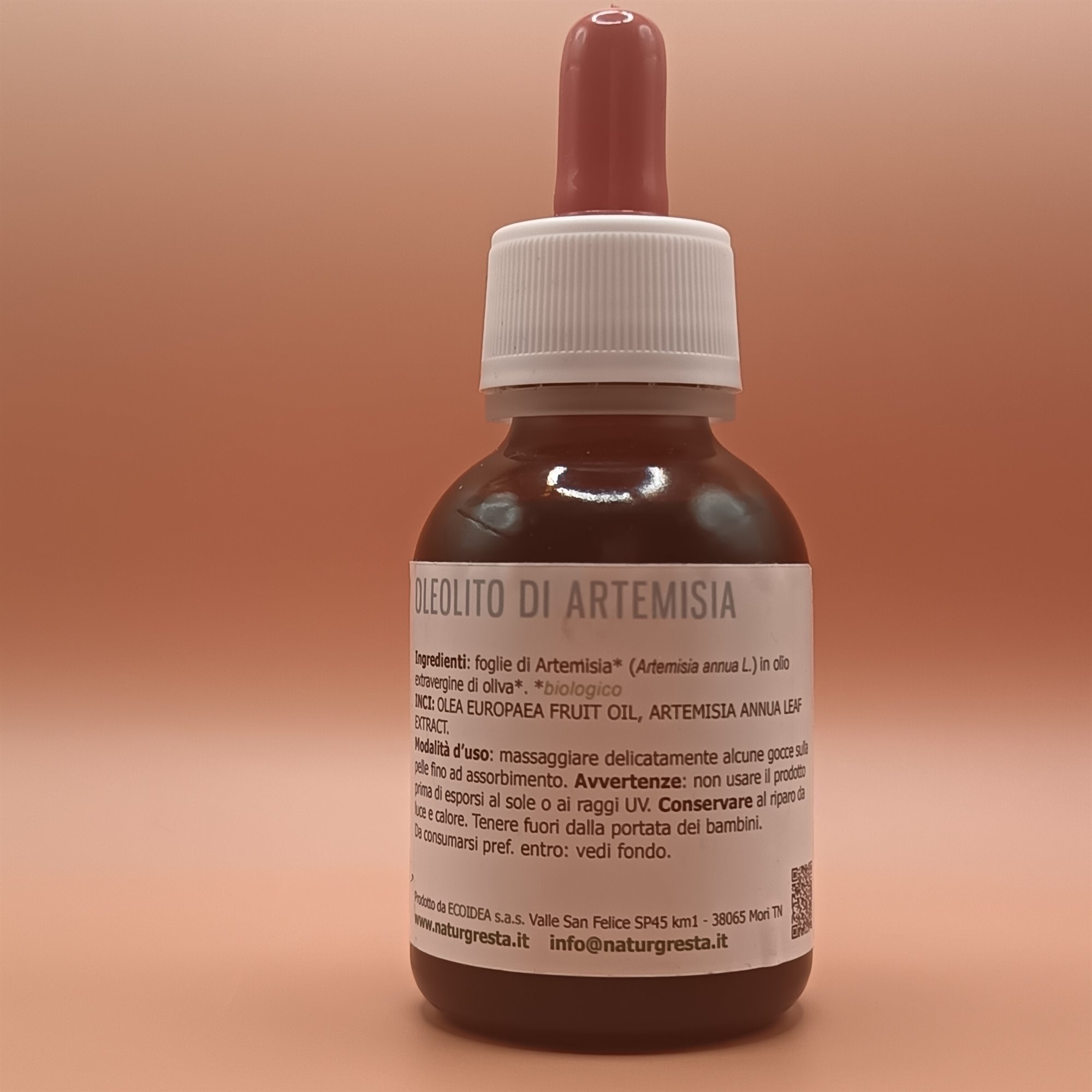 Ingredienti: olio extravergine di oliva*, foglie di Artemisia annua* (Artemisia annua L.)