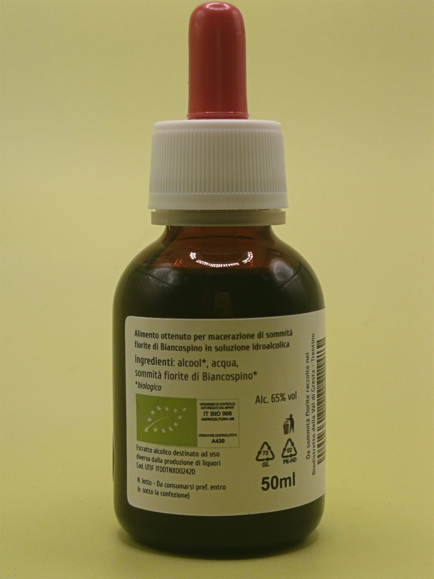 Ingredienti: alcool*, acqua, sommità fiorite di Biancospino* (Crataegus oxyacantha L.)