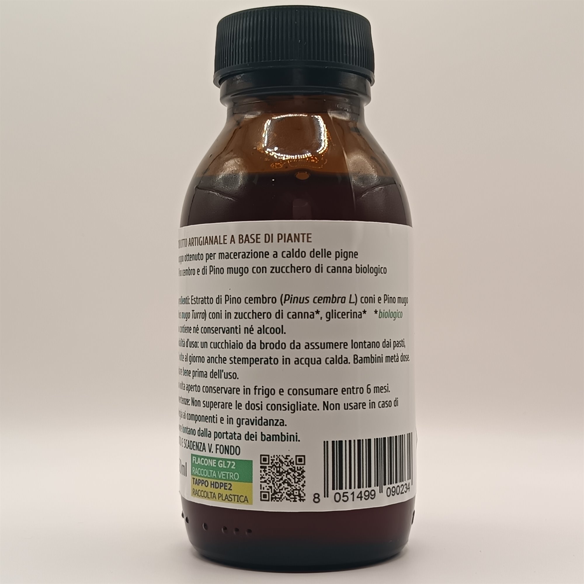 Ingredienti: Estratto di Pino cembro (Pinus cembra L.) coni e Pino mugo (Pinus mugo Turra) coni in zucchero di canna*, glicerina*