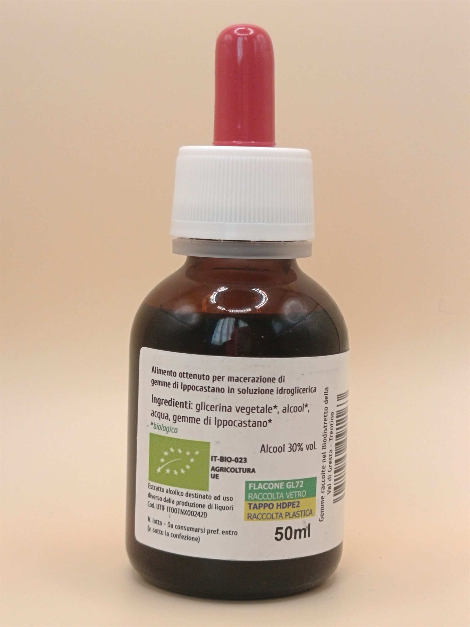 Ingredienti: glicerina vegetale*, alcool*, acqua, gemme di Ippocastano* (Aesculus hippocastanum L.)