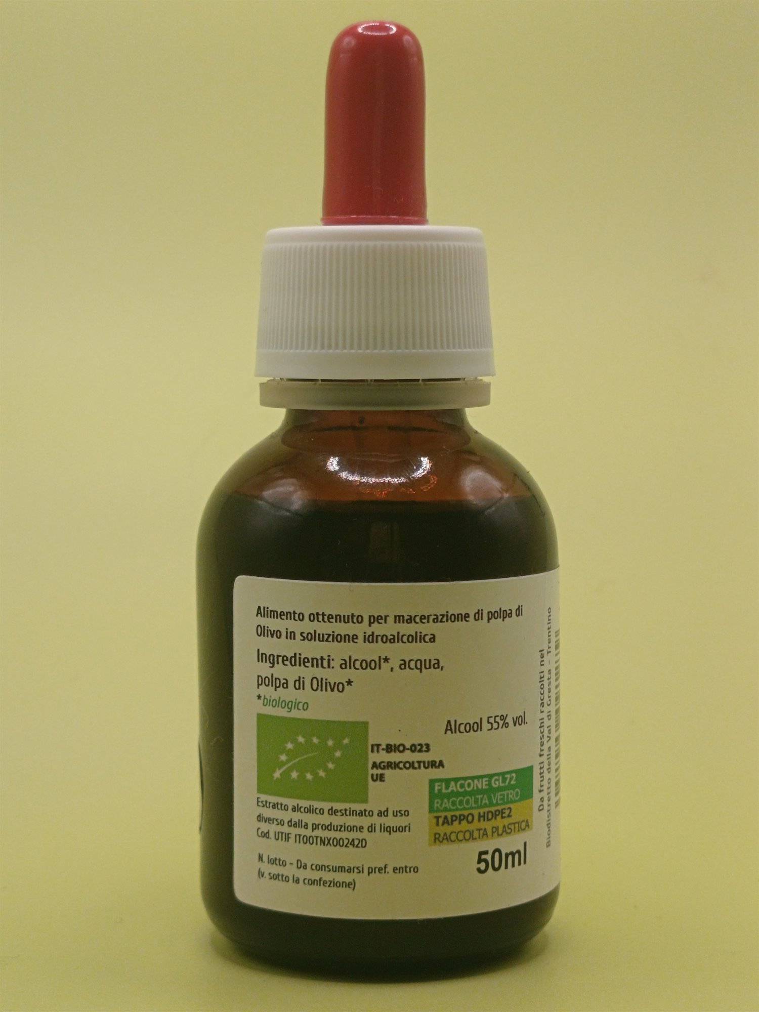 Ingredienti: alcool*, acqua, polpa di Olivo* (Olea europaea L.)