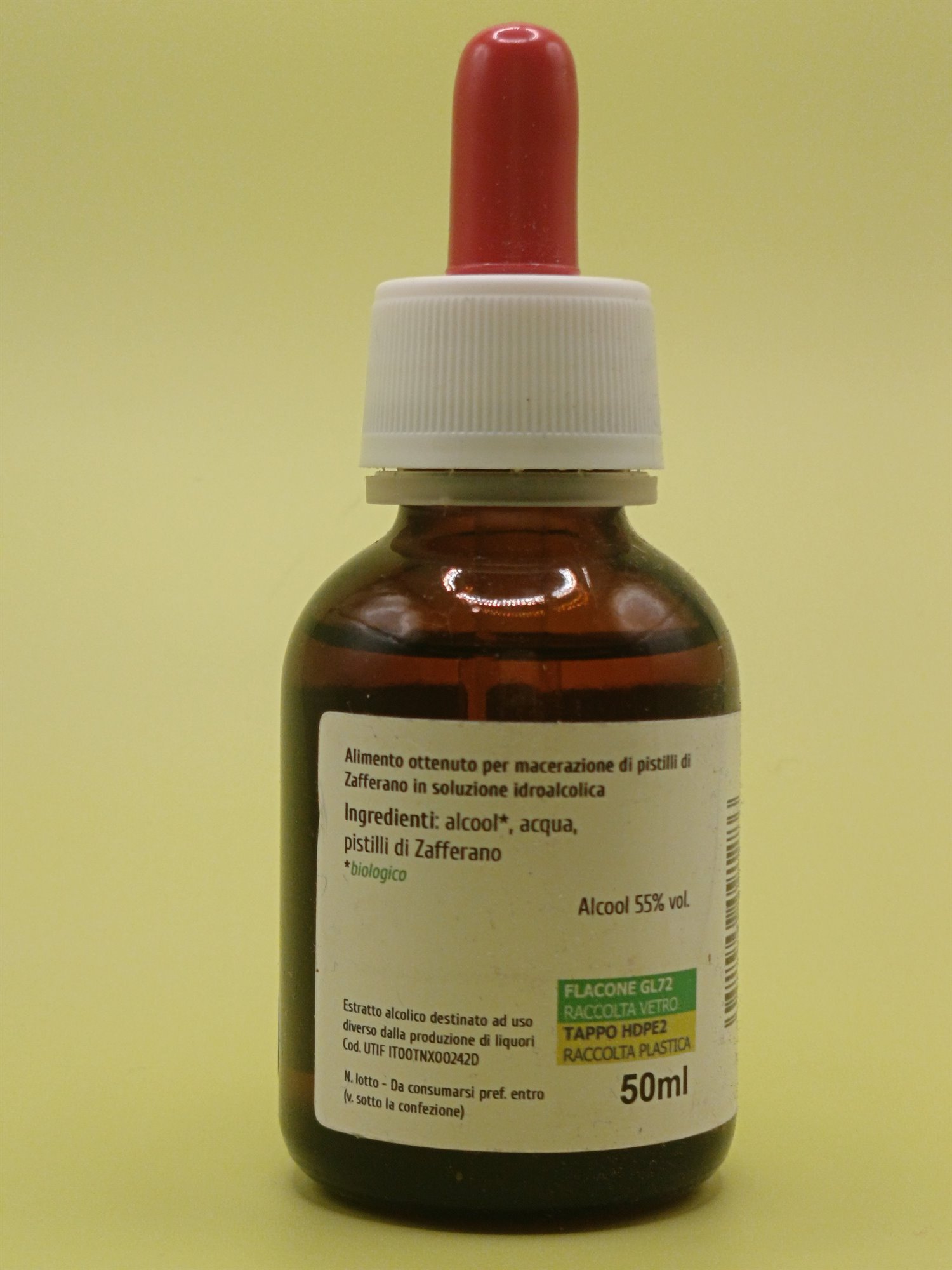 Ingredienti: alcool*, acqua, pistilli di Zafferano (Crocus sativus L.)